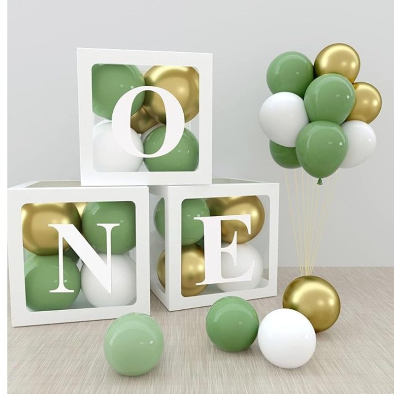 - Enthält eine Box zum 1. Geburtstag mit großen Buchstaben "O", "N", "E" (25 cm x 25 cm x 25 cm) plus 30 B in Gold, Grün und Weiß, um Ihrer Veranstaltung eine lebendige Note zu verleihen.