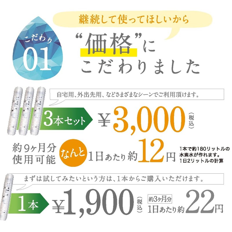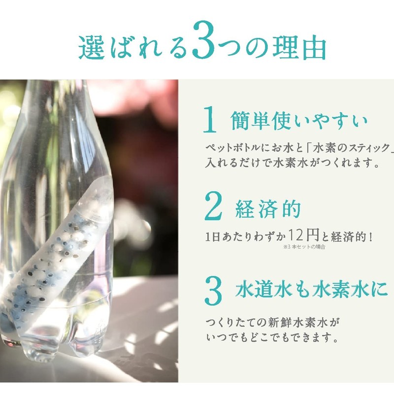 - STICK OF HYDROGEN Hydrogen Stick Easy to Start Hydrogen Habits In addition, it is an authentic product. This is a popular hydrogen water stick for 1 bottle of 4.6 gal (180 L) for an easy and authentic product. Hydrogen Water Diet Hydrogen Water Stick for Home Office Commuting