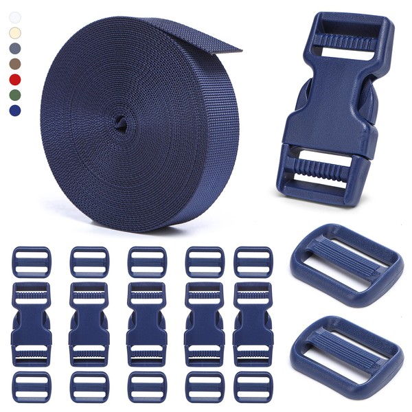 1 inch Buckles and Straps Set, Daily Series Polyester Webbing, Side Release Plastic Buckles for Strap, Navy Blue