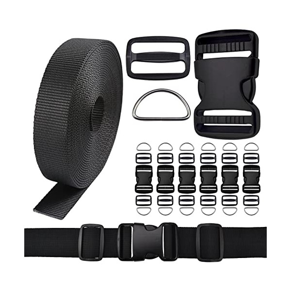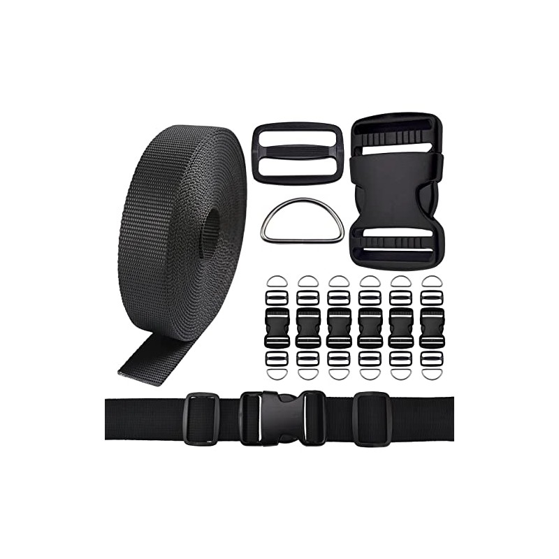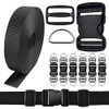 1 Inch Buckles Straps Set 6 Yards Black Nylon Webbing Strap 6 Pcs Quick Side Release Plastic Buckle Dual Adjustable 12pcs Tri-glide Slide Clip 12 Pcs Metal D Rings