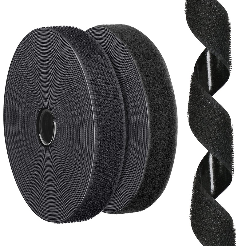1 Inch x 41 Ft Strips with Adhesive, Nylon Self Adhesive Heavy Duty Strips, Double Sided Sticky Back Fastener Roll Tape for Home Office School Car and Crafting Organization Black