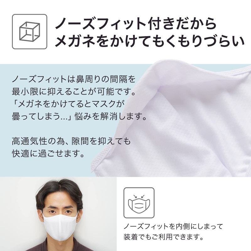 - 鼻のラインに合わせてぴったりフィットするノーズフィット付きで、マスクの隙間を減らし、メガネの曇りを抑えることにも役立ちます。