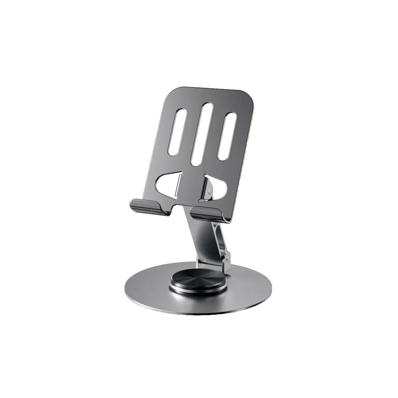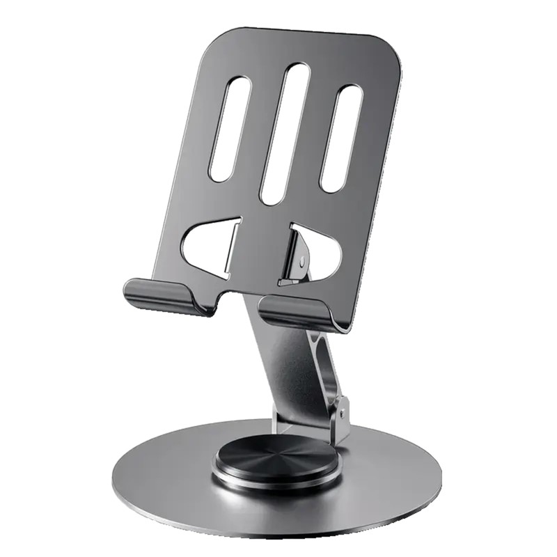1 Metal 360° Rotating Multi-Functional Foldable Phone Stand - Lazy Desktop Universal Holder, Multi-Angle Adjustable (Black)