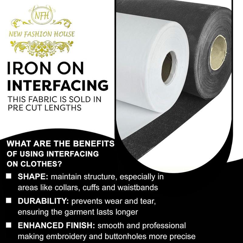 - Easy to use - place the adhesive side of the interfacing to the underside of your fabric, cover with a slightly damp cloth (optional) and press with a hot iron to fuse them together.