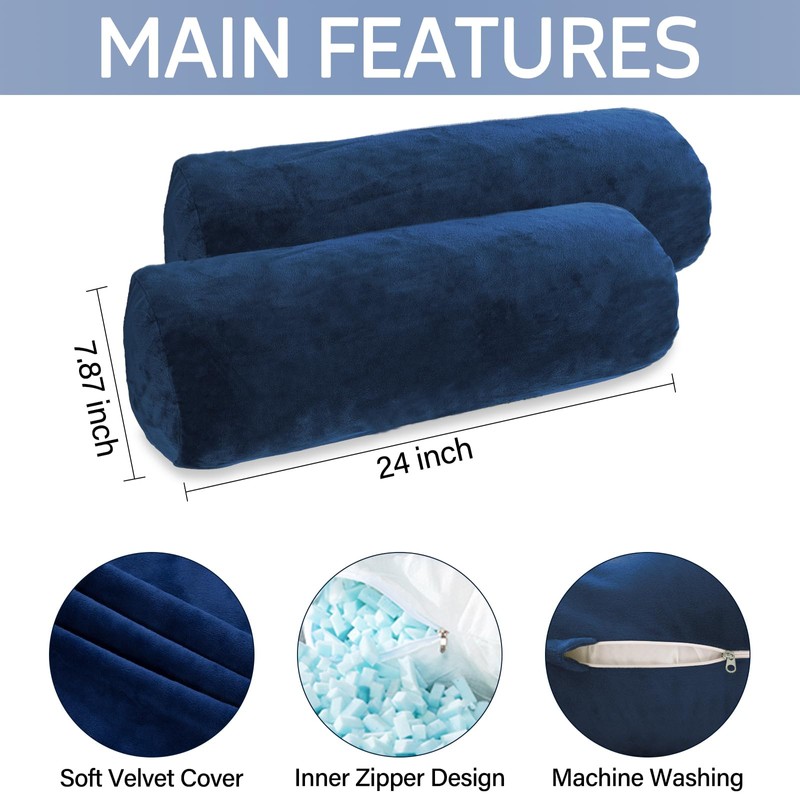 1 MIDDLE ONE Body Pillow, Memory Foam Body Pillows for Adults Sleeping, Decorative Bolster Pillow for Bed & Couch, Long Cylinder Tube Round Pillow, 24x7.87 Inches, Set of 2 (Navy Blue)