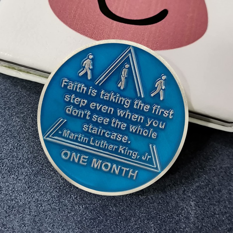 - Delicate craftsmanship 3D sculpted 1 month sobriety chip as a constant reminder of your love and continued support. AA sobriety coins are available in 1 to 12 Month.