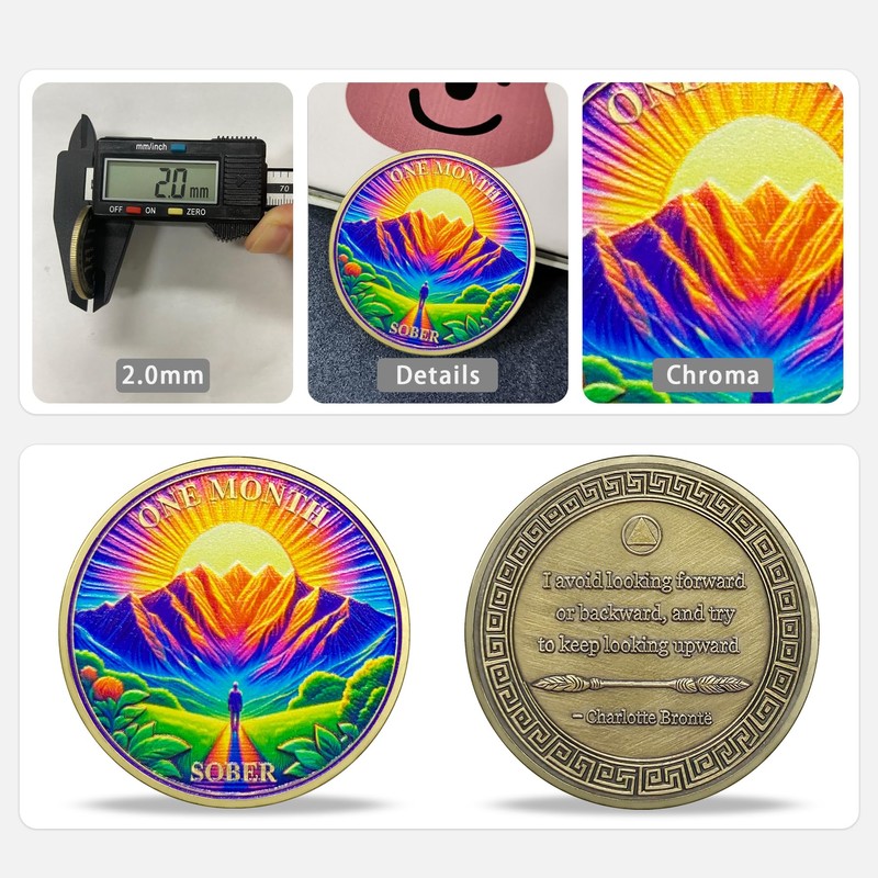 - Superior Craftsmanship and Material: This coin is crafted from premium materials, ensuring durability and longevity. The metal surface undergoes precise engraving and coloring processes, maintaining the clarity of the pattern and enhancing its wear resistance and oxidation resistance, making it a lasting symbol of one's sobriety journey.