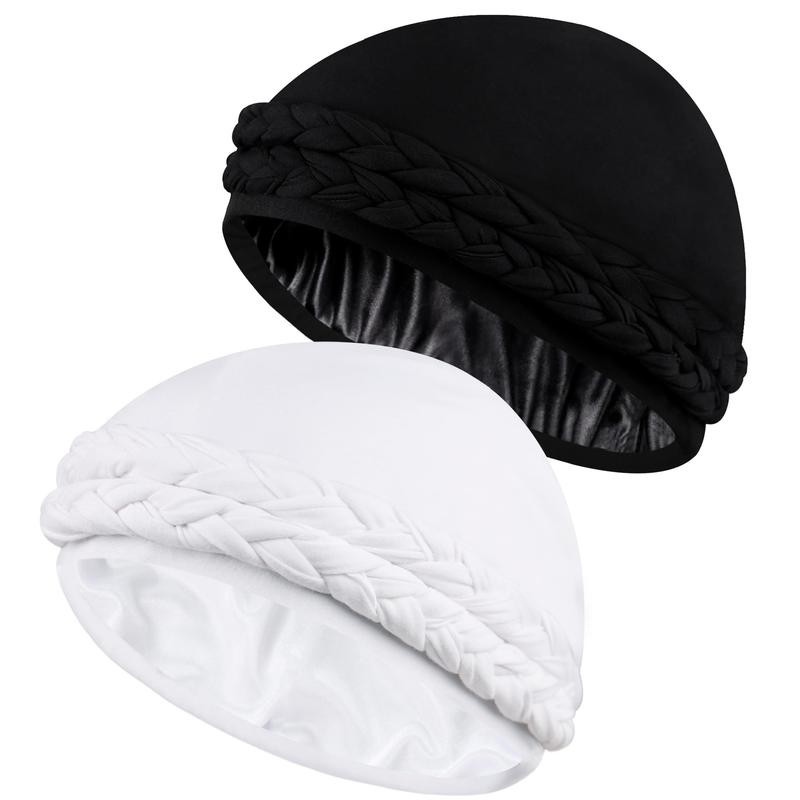 1 or 2 Packs Luxurious Satin-Lined Turban for Men and Women Stylish Pre-Tied Braid Head Wrap, Sleep Cap, Bonnet, Durag for Ultimate Comfort and Style:_Black+Army Green