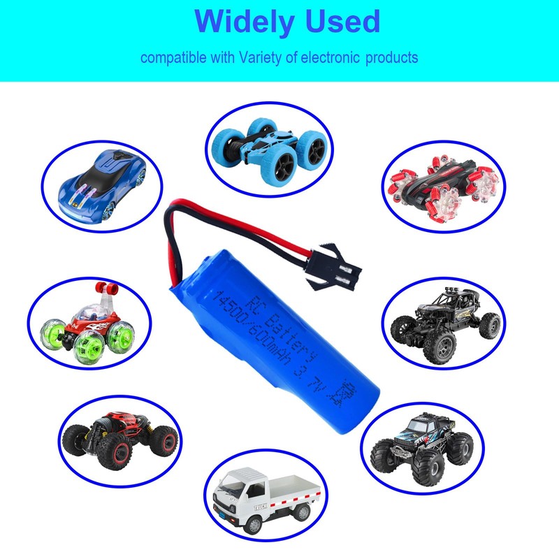 • Application 2: 3.7V 600mAh Battery(3.7v 500mAh Li-ion Battery upgrade) is suitable for some kind 2.4 GHZ Double Sided RC Stunt Car ,360° Rotating Remote Control Car Toys. 3.7V 600mAh Battery suitable for some kind remote control stunt car, 4WD Double Side Racing Vehicle, 3.7V mAh Li-ion battery suitable for some kinds of 4WD RC monster truck,2.4Ghz All Terrain Rc Truck Toys, which battery size, voltage and plug all match.