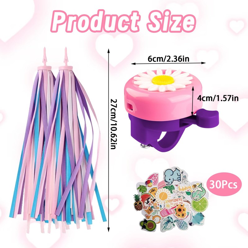 【Adorable Bicycle Decorations】These bike bells deliver a crisp loud ringtone to be heard clearly and make riding much safer. Package includes 1 pack bike bells + 2 colorful streamers+ 30 stickers