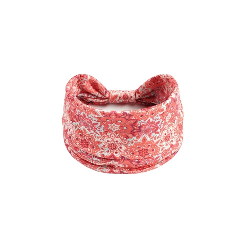 1 Pack Boho Headbands Stretch Paisley Print Bandana Headband Criss Cross Hair Bands Knotted Head Wrap Yoga Daily for Women and Girls (Pink)
