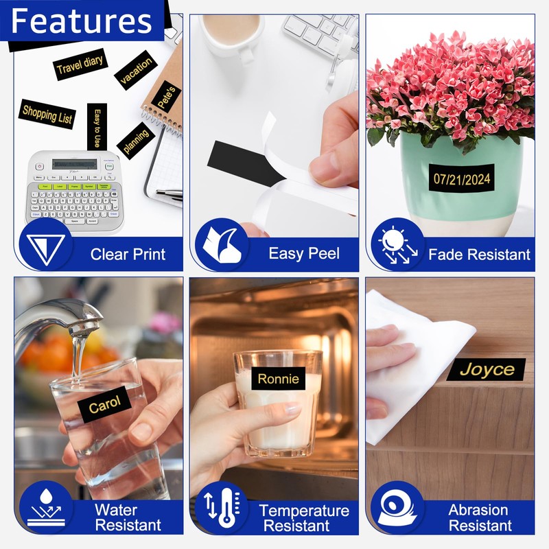 - 【Applications】: ▶Uses: Item classification, date labels, operating tips, price labels, personal item labels, DIY blessings, etc. ▶Scenes: Homes, offices, schools, hospitals, governments, hotels, restaurants, factories, banks, laboratories, warehouses, farms, repair shops, shops, supermarkets, etc. This label tape will help you easily identify items and quickly organize your home or work space.