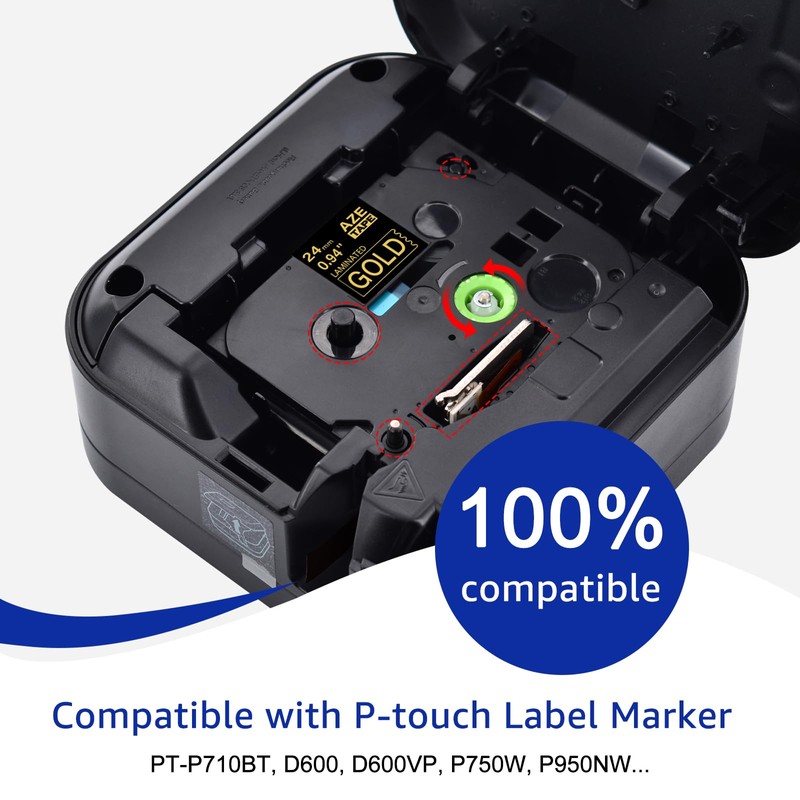 - 【Product Information】: Esaytool Replacement for TZe-354 TZ354 TZe 354 laminated label tape. Color: Gold text on black tape. Width: 0.94 inch (24 mm), Length: 26.2 feet (8 m).