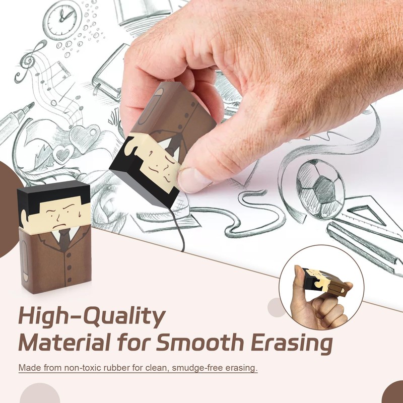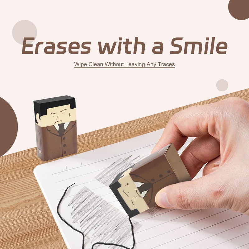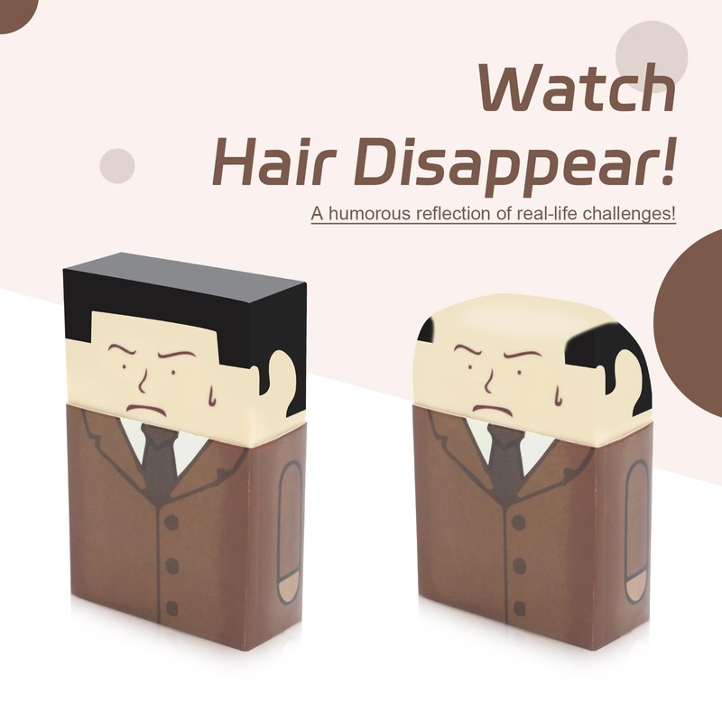 - Unique Stress-Relief Design: Watch the Salaryman eraser gradually lose his hair as you erase mistakes—a humorous reflection of real-life challenges! Perfect for sparking laughter in offices, classrooms, or as a creative gif