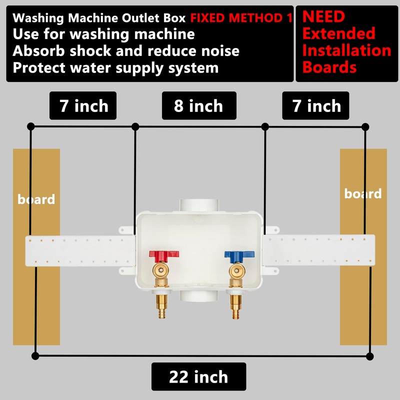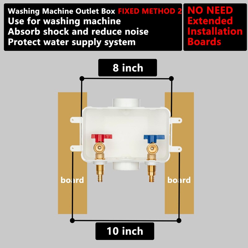 - Easy to install. Washing machine outlet box with hot & cold brass ball valves.