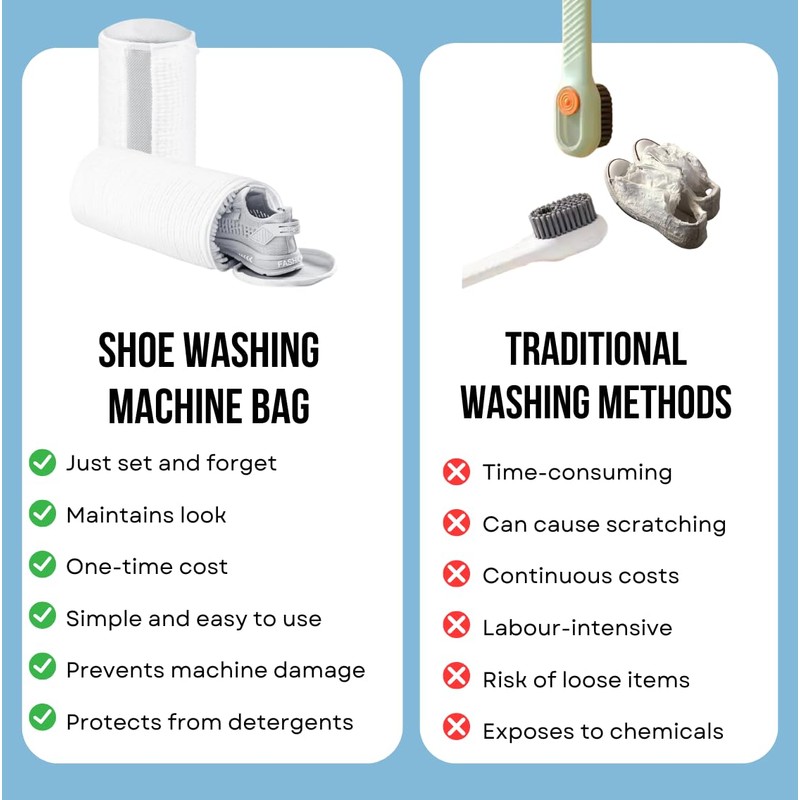 - All-Purpose Cleaning Shoe Wash Bag ✅ This mesh laundry bag for shoes is ideal for cleaning most shoe sizes and types. It's also designed to wash insoles, baseball hats, and lingerie.
