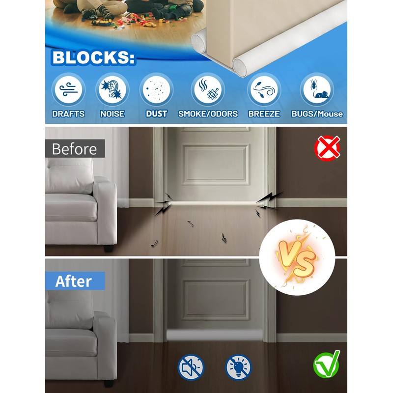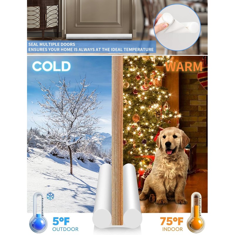 • 【How To Use】1.Measure the width of the door;2.Stuff foam sticks into the cover;3.Cut the foam and the cover rod into the right length;4.Push the product slowly into the door seam.
