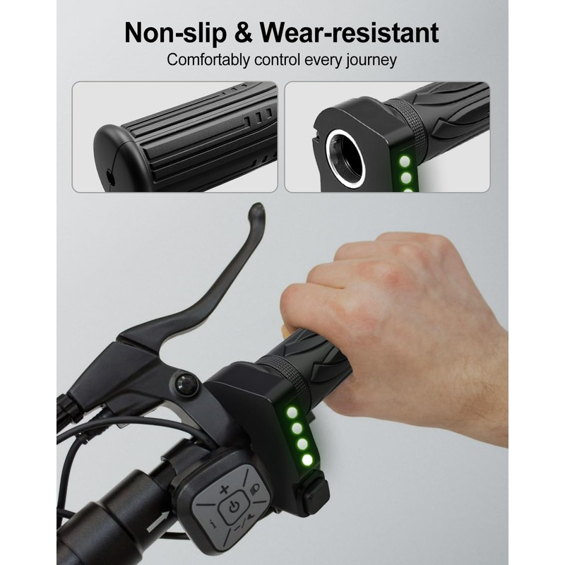 • Precise and Sensitive Throttle Response: The rotary throttle structure achieves a smooth acceleration experience and precise speed control, suitable for urban commuting and outdoor riding, and effectively solves throttle sluggishness, slow response, line damage, severe wear and tear and control slippage problems