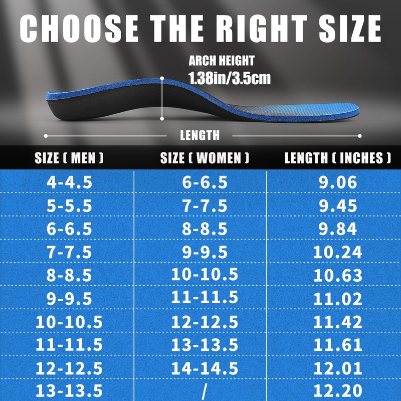 - 【VERSATILE INSOLES】Supporting all arch types—low, medium, and high arches—these arch support insoles designed for both men and women suit most of your footwear, including work boots, sneakers, running shoes, casual shoes, hiking boots, and more. Ideal insoles for everyday wear, prolonged standing, work, fitness, running, hiking, and beyond. Experience the joy of life-changing comfort and unlock limitless possibilities