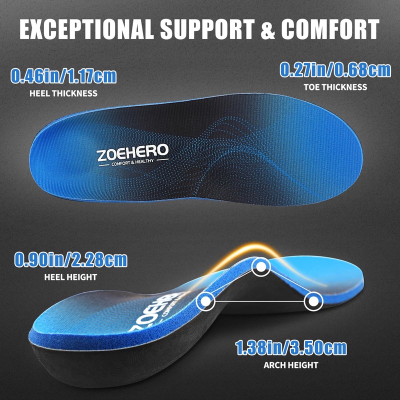 - 【STURDY AND DURABLE】Constructed from premium materials, these insoles are robust and enduring, ensuring lasting comfort and support. The breathable, soft foam layer and anti-slip mesh top cover effectively manage odors, keeping your feet dry and cool. From the moment you step into ZOEHERO Comfort Support Insoles, feel the difference in every stride