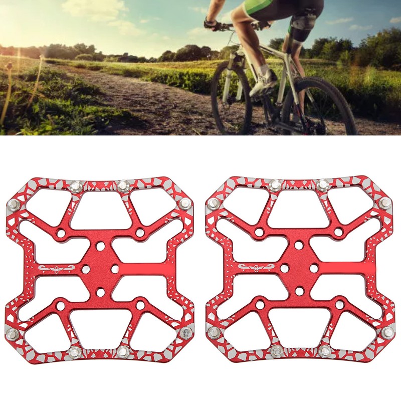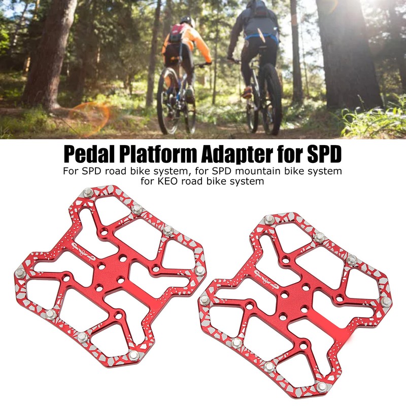 1 Pair Bicycle Clipless Pedal Converter Self Locking Disc Pedals Platform Adapter for SPD Bike SystemRed