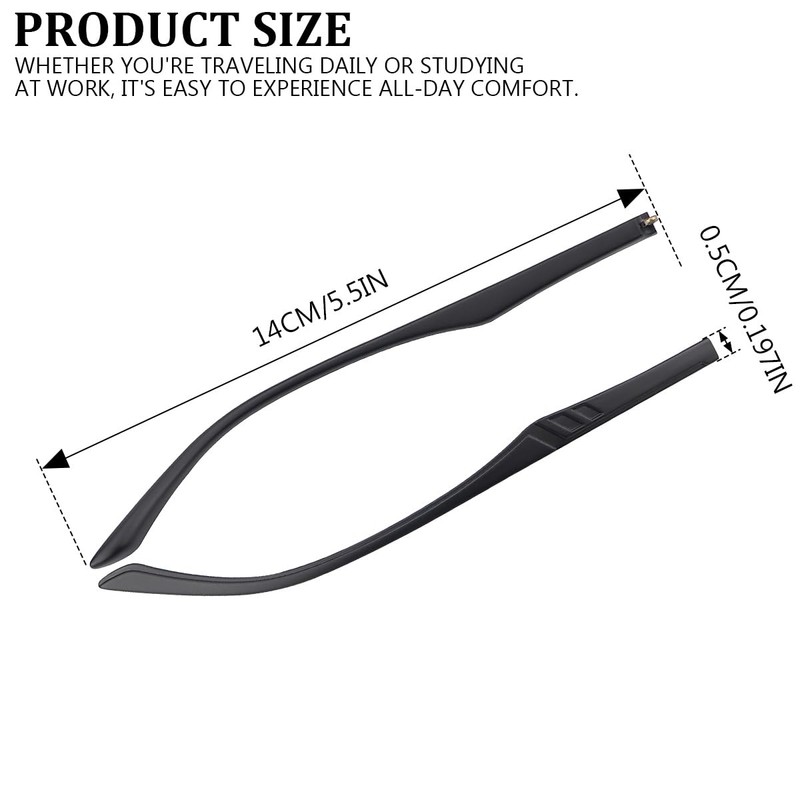 - Comfortable and Ergonomic: Our replacement arms are designed for optimal comfort. They do not squeeze your head, and the TR90 plastic reduces metal contact between your ears and the temples, ensuring a comfortable and enjoyable wearing experience.