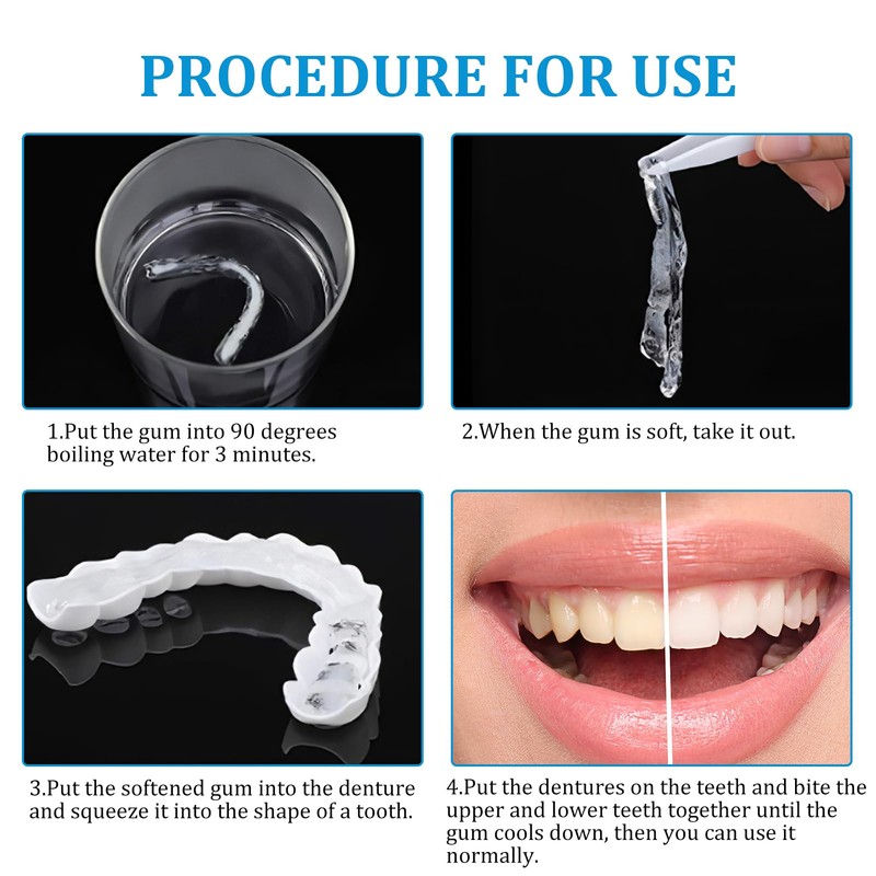 - Easy to Use Dentures:Easily achieve tooth correction; just soak the dentures in hot water, place on your teeth, and adjust for comfort.
