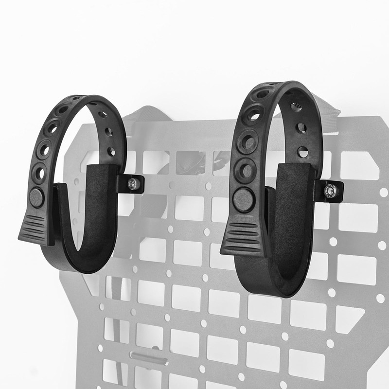 • Set of 2 Gun Racks for Metal Tactical Molle Panels - Mount Your Guns Securely with Rubber Straps on Molle Panels in Vehicles or Trucks. Designed for 1'' Standard Tactical Hole Spacing on Rigid Panels.