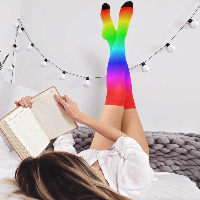 1 Pair High Thigh Socks Over Knee Socks Long Crew Circulation Stockings Casual Compression Leg Warmers Boot Socks Print Rainbow Color Visible Optical Light Spectrum