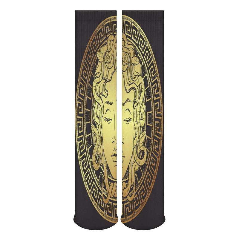 1 Pair Knee High Stockings, Long Soft Compression Crew Foot Circulation Foot Socks for Sports 15.7x3.9 in Print Golden Head on a Shield Line Art and Dot Print