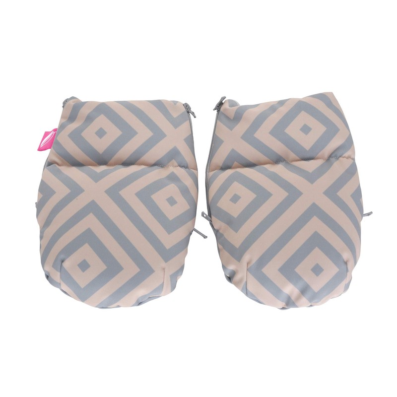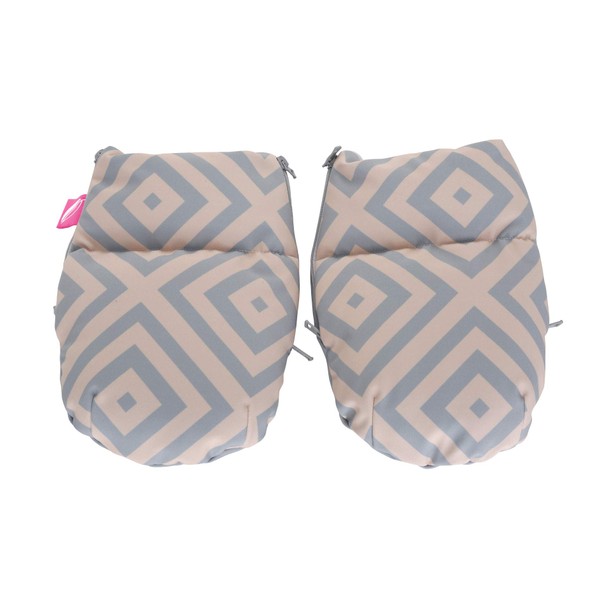 1 Pair of Hand Warmers Muffs for Pushchairs Made of Softshell (Squares Apricot)