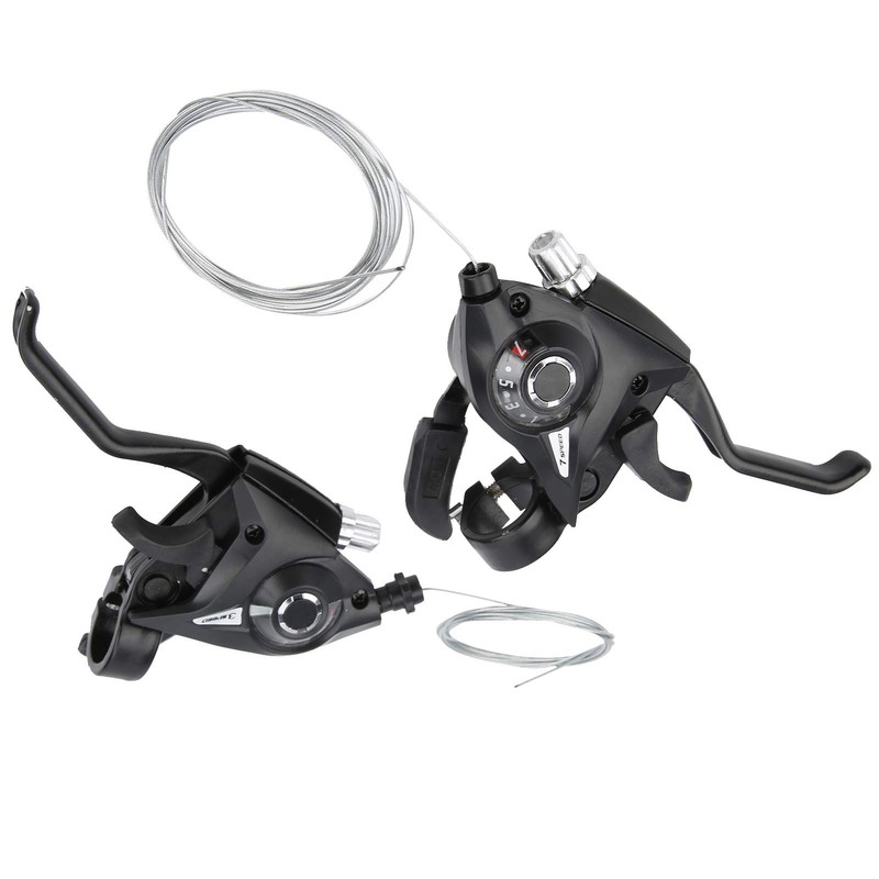 - Combinación versátil de freno y palanca de cambios: el juego combinado de palancas de y freno de bicicleta de 1 par 3x7 de 21 velocidades incluye palancas de freno integradas con cables de freno de acero inoxidable delanteros y traseros, que ofrecen funcionalidad de 21 velocidades para una experiencia de ciclismo suave y eficiente.