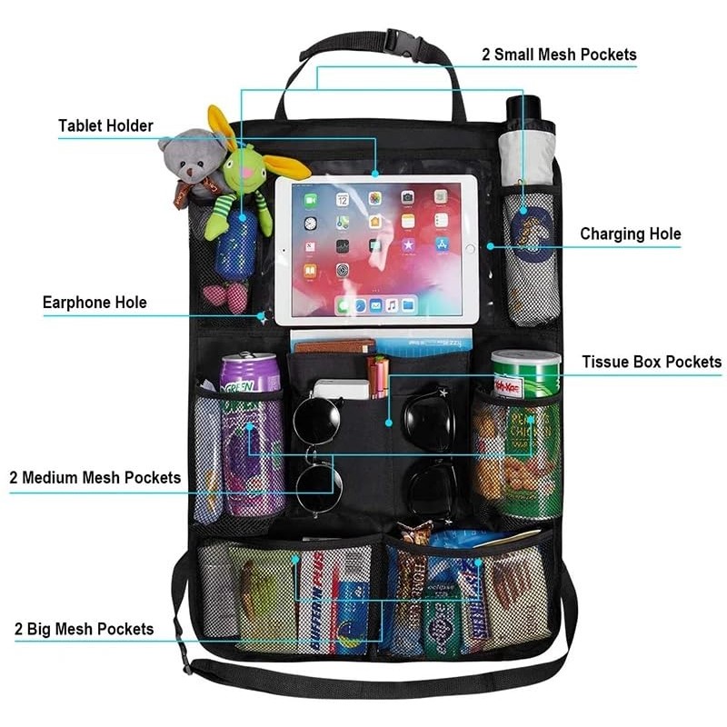 - 【Car Organizers and storage】This Car Back Seat Organizer Design of multiple storage compartments,including mesh pockets,hold your toys,books,iPad ,bottle, drink,umbrella ect,Suitable for most of cars, vehicles and SUV.