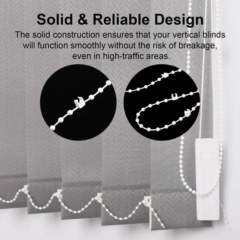- 【Solid & Reliable Design】The chain features 11 balls between each clip, providing smooth movement and reliable operation. The solid construction ensures that your vertical blinds will function smoothly without the risk of breakage, even in high-traffic areas.