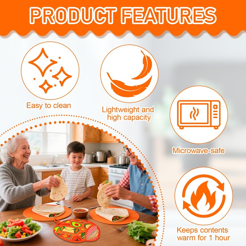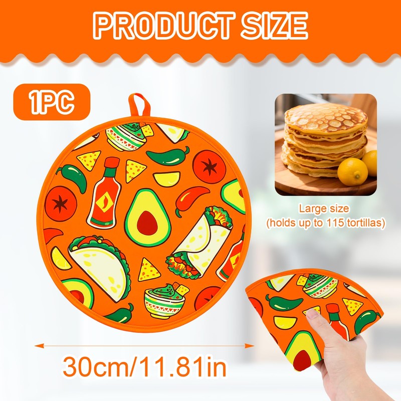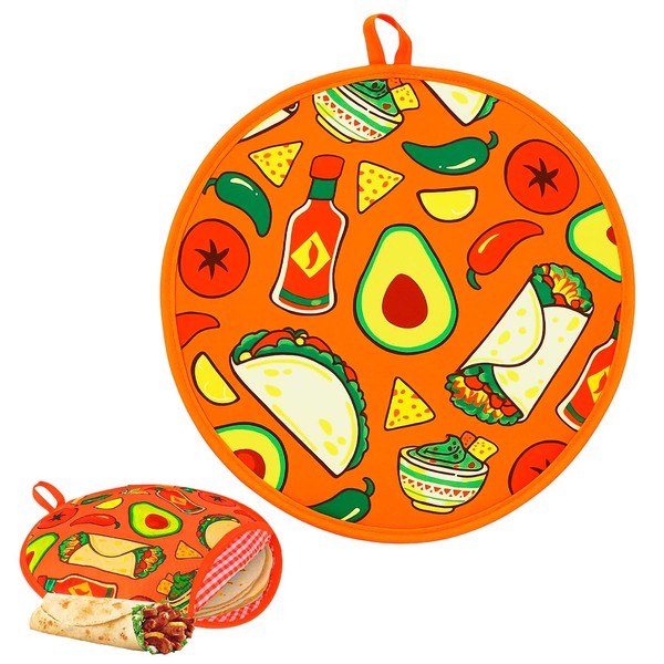 1 Pcs 12 Inch Tortilla Warmer Pouch,Orange Microwave Tortilla Warmer Fabric Pouch,Microwavable Insulated tortilla Holder,Keeps Naan and Pizza Rolls Warm for One Hour,Outlasting Ideal for Family Feasts