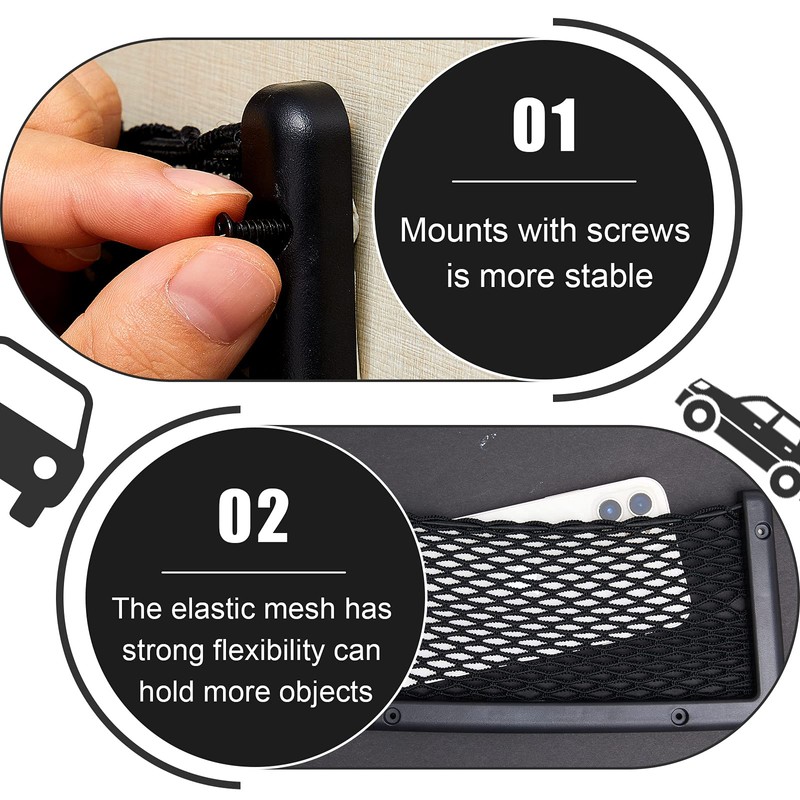 - Easy to Operate: these car net pockets can be operated very easily, you only need to fix the mesh bag in the correct position with a screwdriver, which are very convenient, and can save your time and efforts, you can fix the storage net on the screws on your car, truck, van, SUV, boat, golf cart, RV or almost any vehicle