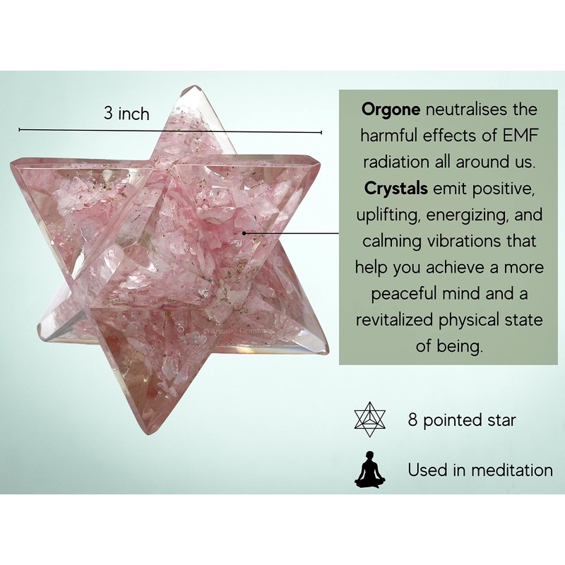 - Size of these Rose Quartz Orgone Merkaba Star is around 2.5 to 3 inch and weight is around 7 oz.