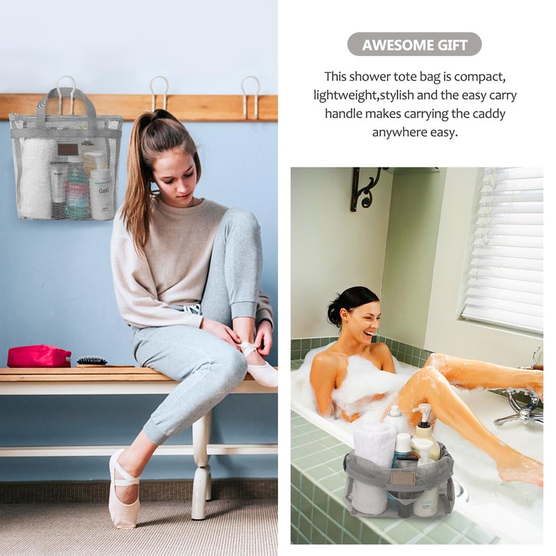 • Perfect dorm essentials: This shower tote dorm caddy is lightweight, stylish, hanging mesh shower caddy dorm over the door, shower head, or on a hook. With a shower bag, no need to complain about communal showers or accidentally leaving items in the bathroom. Easy to carry items and keep the shower caddy tidy