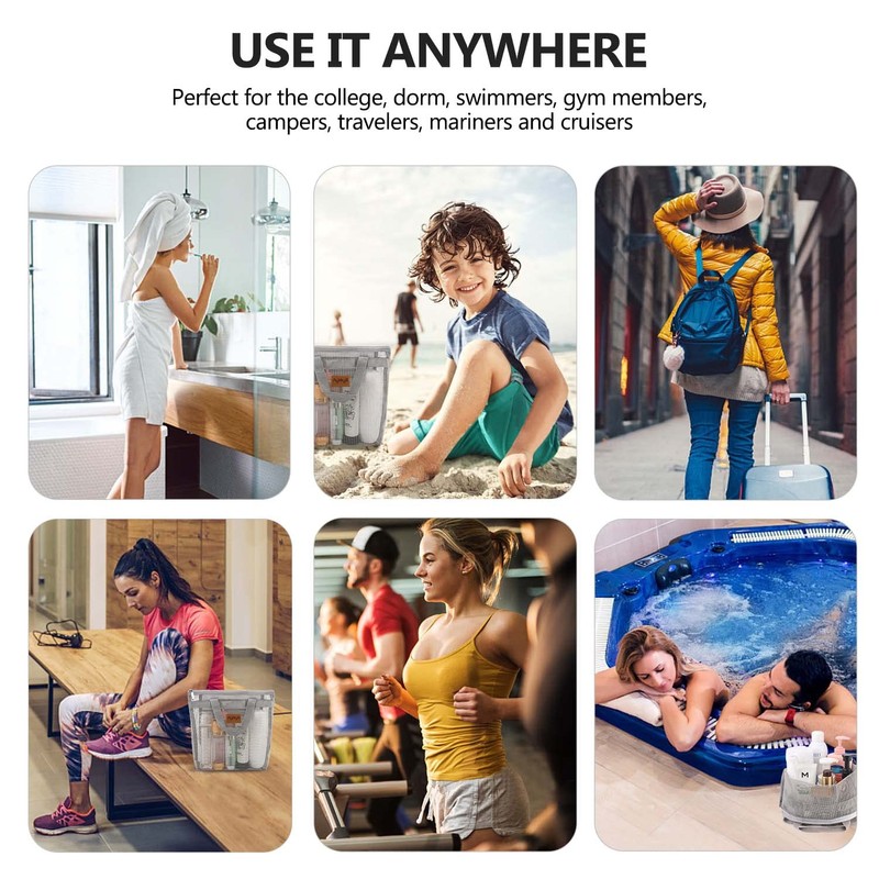 - Lightweight toiletry caddy tote easily folded up to fit in your carry on for travel or vacations. - Designed with double carrying handle are perfect for the college, dorm, swimmers, gym members, campers, travelers.