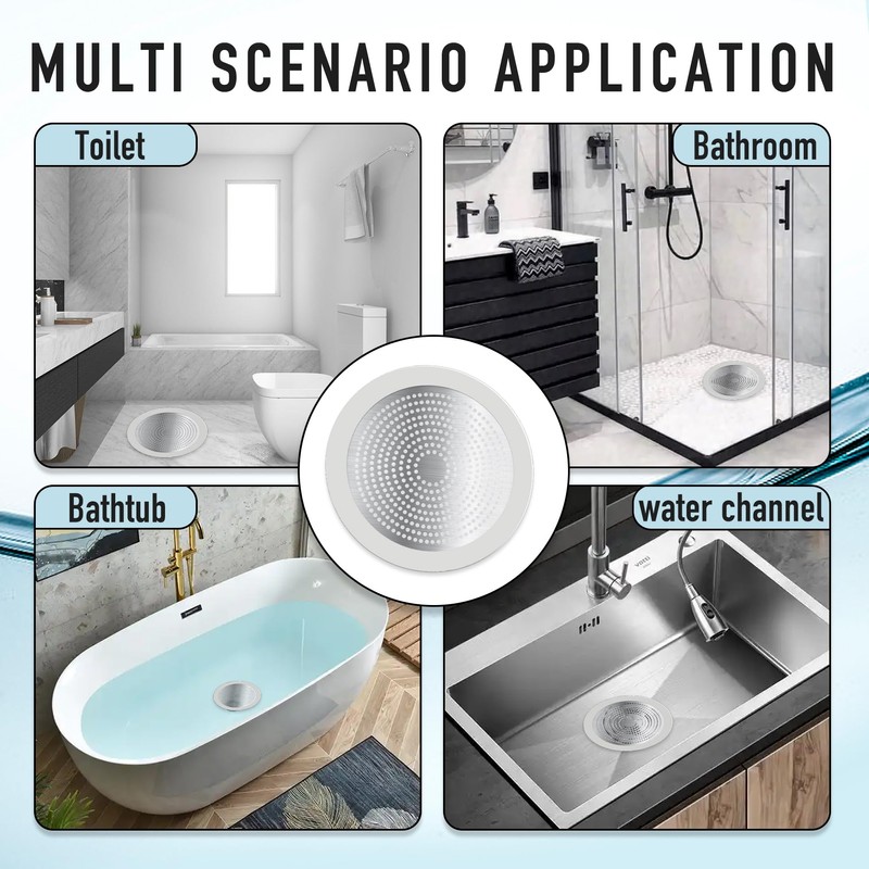 The Drain Protector has a universal size that can effectively prevent hair, food residue, or small debris from blocking the drainage pipe, ensuring smooth and unobstructed drainage. It is suitable for bathrooms, laundry rooms, bathtubs, kitchens, and more.