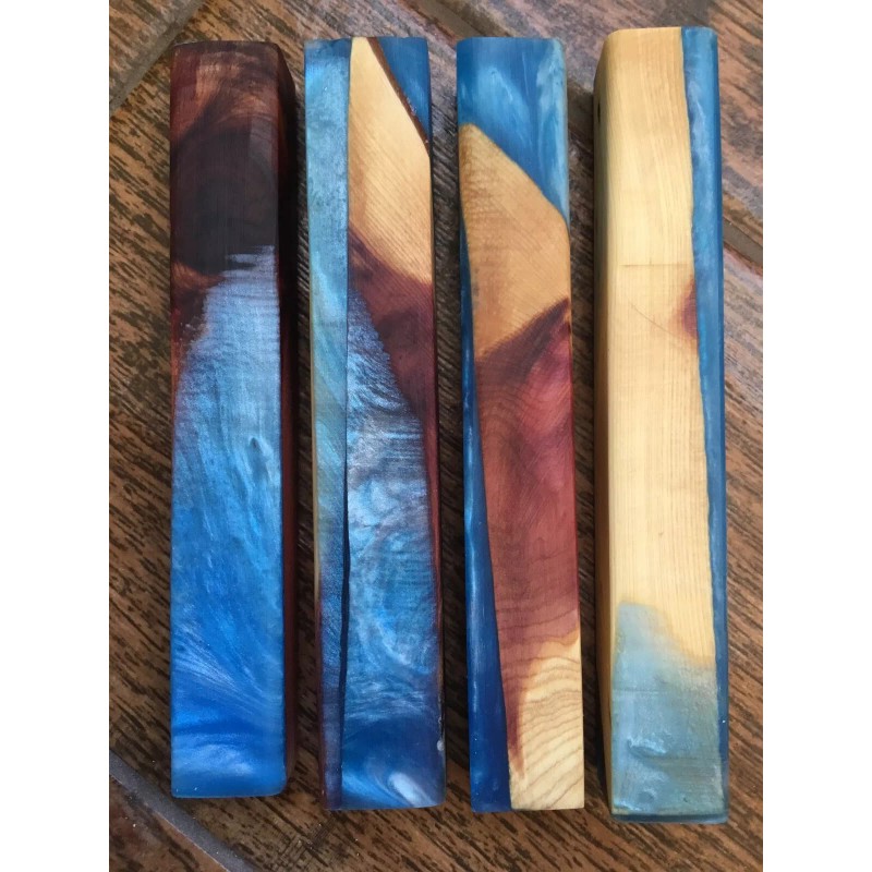 1 Pen Blank Hybrid Stabilized Cedar Epoxy Blue