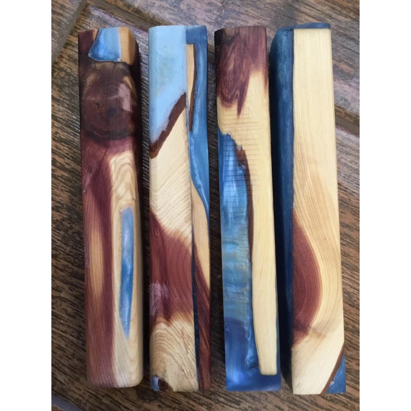 1 Pen Blank Hybrid Stabilized Cedar Epoxy Blue.