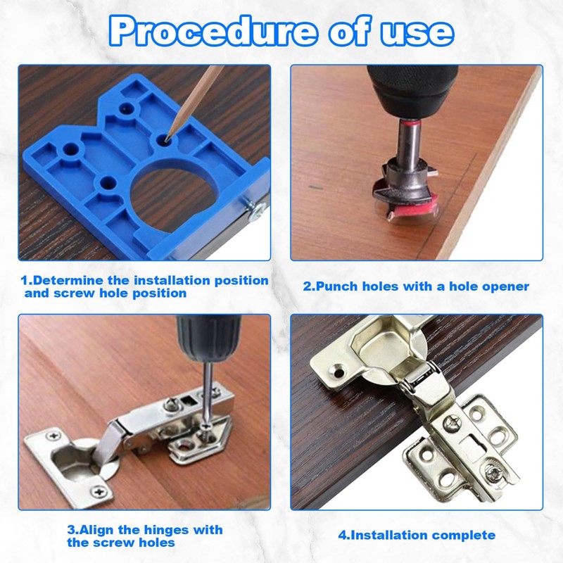 - Easy to use: The hidden hinge clamp drilling tool guide device can quickly locate the hinge center point, even if you are not a professional, you can quickly locate the hinge and the drilling center point of the mounting plate.