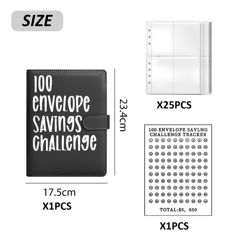 1 Piece of Black Binder, 25 Sheets of A5 Four-Square Grid Card with 100 Days of Paper, Photo Storage Book, Budget Binder, Suitable for Money Management, Travel, Diary and Office Use.