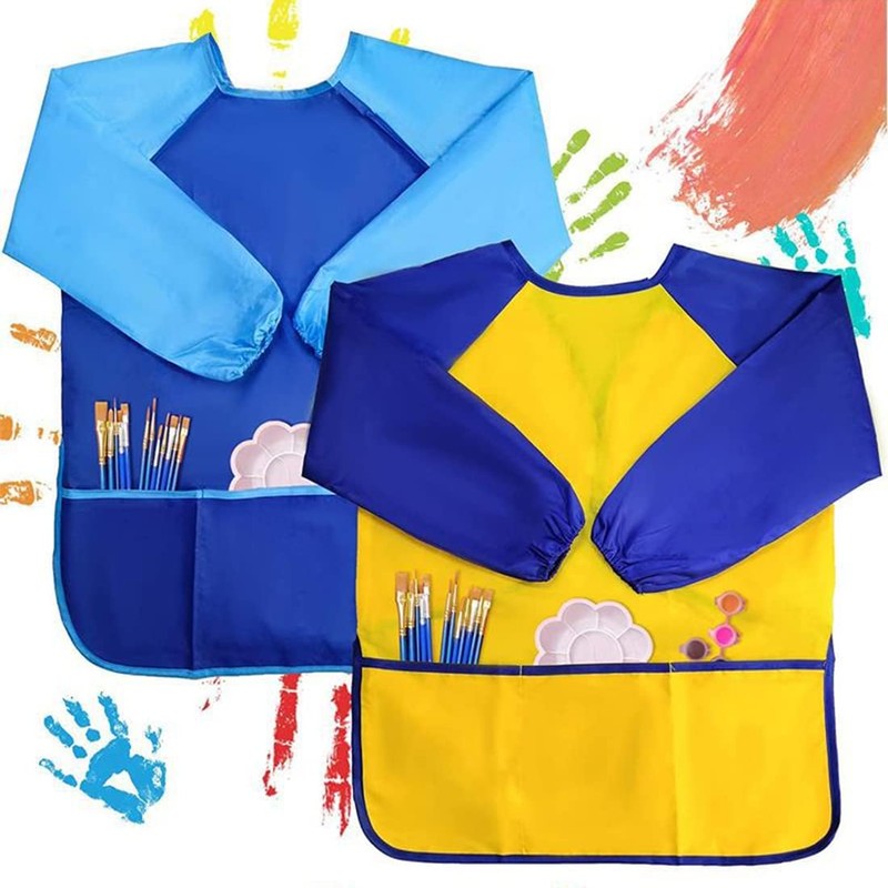 - The popular design has long sleeves to provide the best protection, and the adjustable closed design is easy to use. 3 pockets for children that can hold their painting supplies such as water pens, paints, snacks, paper towels and much more.