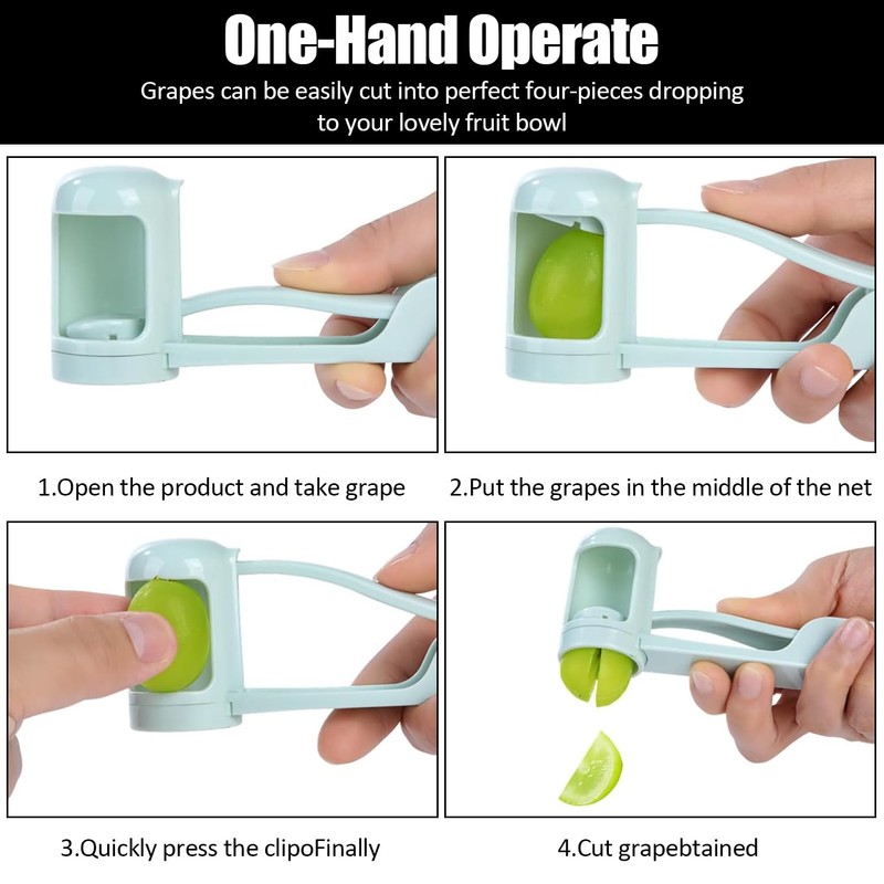 - COMFORTABLE This grape slicer is ergonomically designed, provides comfortable grip and prevents slipping. It provides a pleasant feeling when cutting fruit, and after each use, the cutter automatically retracts and returns to its original position.