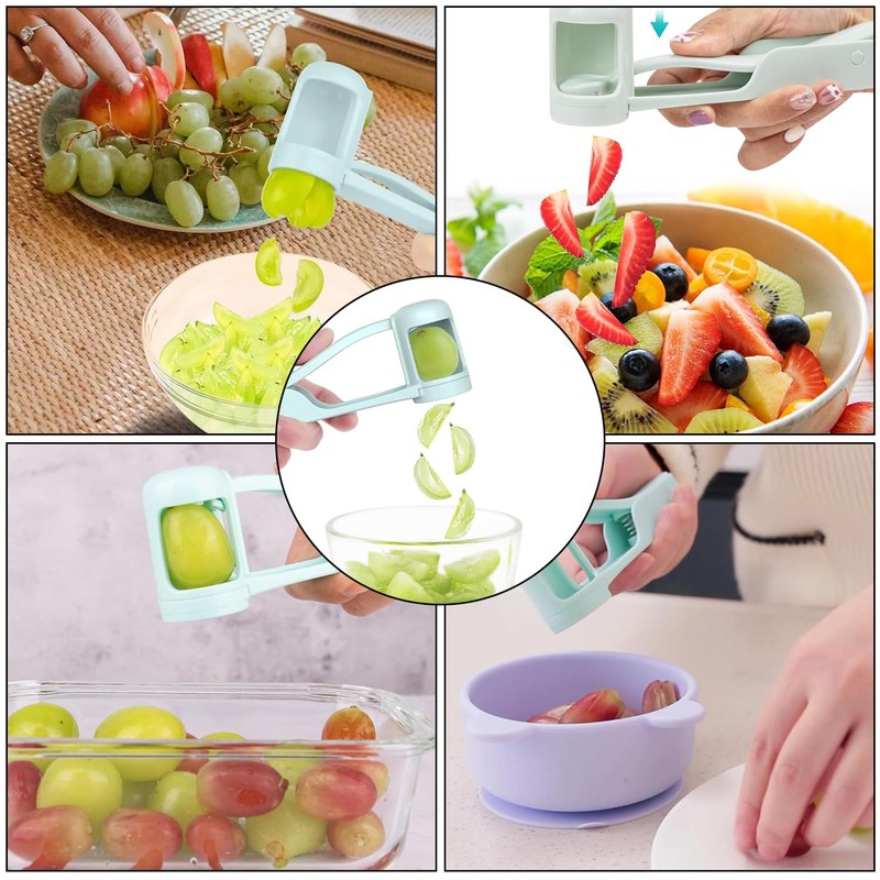 - Usage This stainless steel grape slicer is not only suitable for seedless grapes, but also for small fruits such as cherries, tomatoes, strawberries and blueberries. It is a multifunctional kitchen tool.