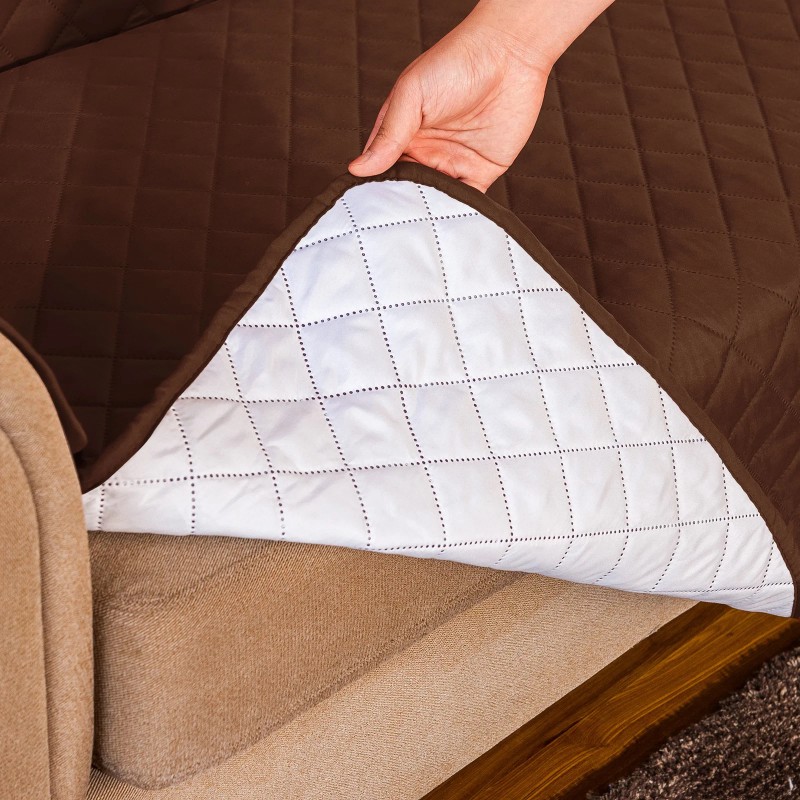 1-Piece Reversible Sofa Cover Quilted Slipcover (Sofa, Chocolate)