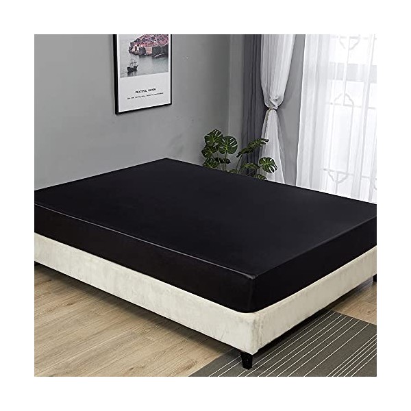 1 Piece Satin Fitted Sheet Only Classic Luxury Silky Soft Bed Sheets Solid Color (Black, Fitted Sheet(Queen))