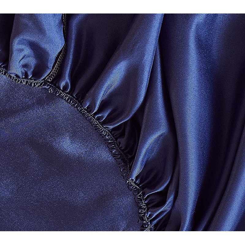 1 Piece Satin Fitted Sheet Only Classic Luxury Silky Soft Bed Sheets Solid Color (Full, Navy Blue)